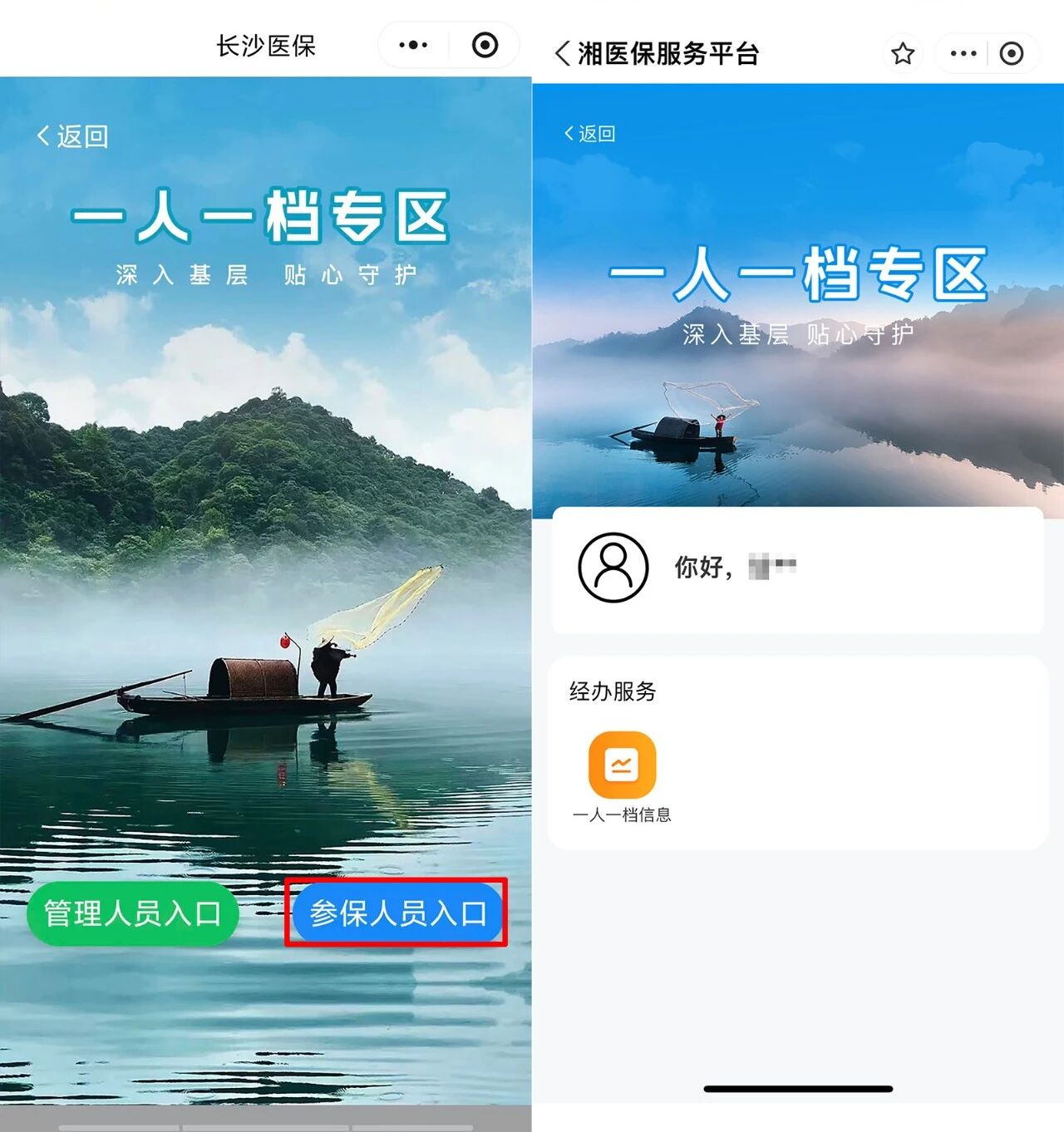 第二步:点击进入“日本AV ”小程序,2025年首次登录提示“为方便您获取参保及待遇享受信息,请您填报个人基本情况”,点击完善信息;或者点击进入“日本AV ”小程序,在专区中,选择对应的市州,找到“基层服务专区”。